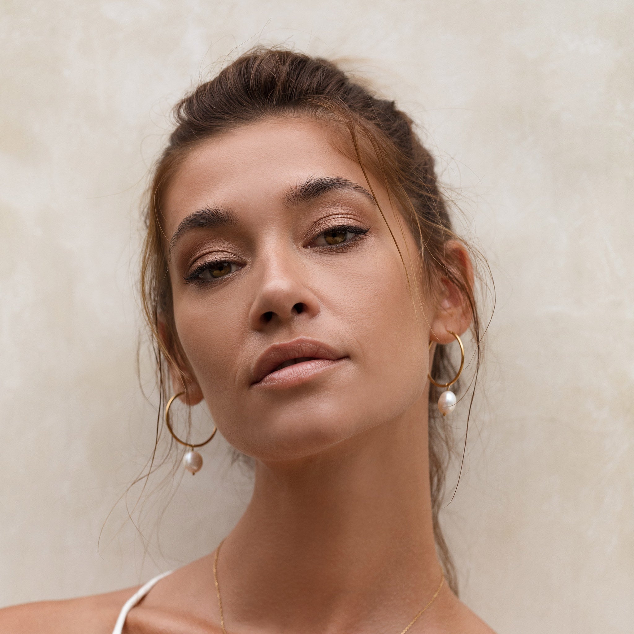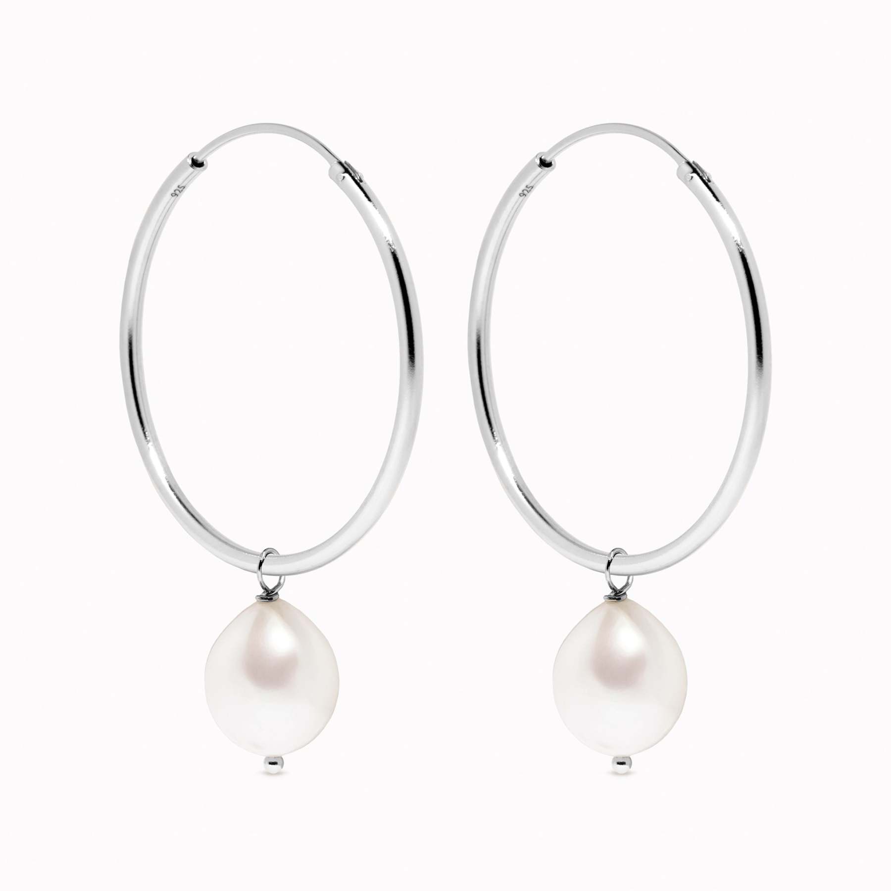 Hoop Earrings with Pearl Silver - Rebecca